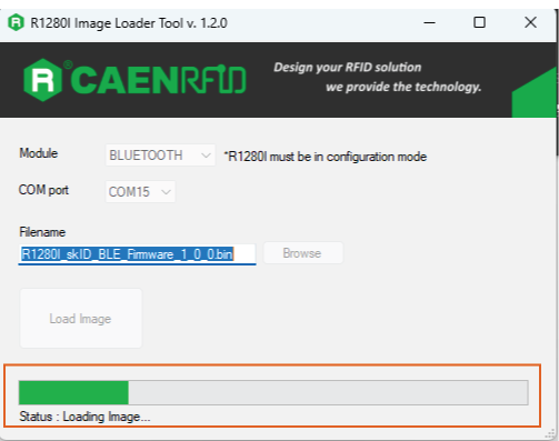 To change the Bluetooth mode from BT to BLE, same steps are to be followed as mentioned above, only the R1280I_skID_BLE_firmware.bin file is to be used instead of R1280I_skID_BT_firmware.bin