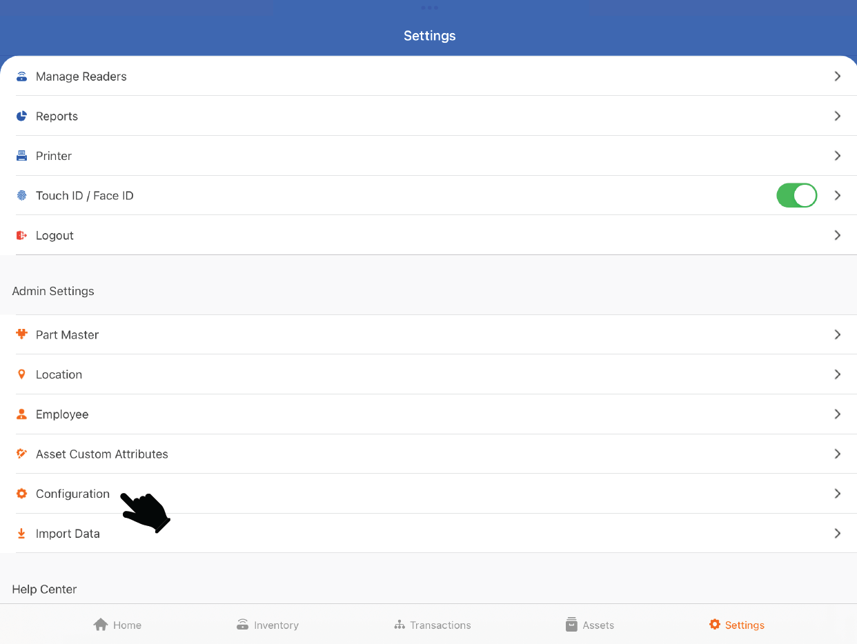 1. After successful login into TagMatiks AT Lite application, go to “Settings” and then click on “ Configuration”.
