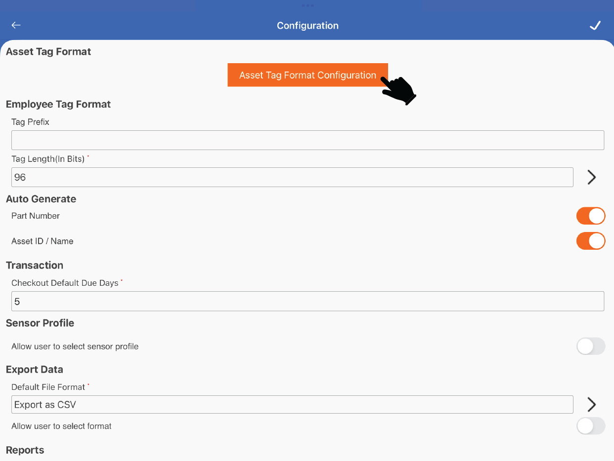 For creating a custom Tag ID of an asset; the “Encode Tag” option is available in the application under “Create Tag”. Prior to this, the application must have proper “Asset Tag Format Configuration”. To have the proper “Asset Tag Format Configuration", please follow below steps: