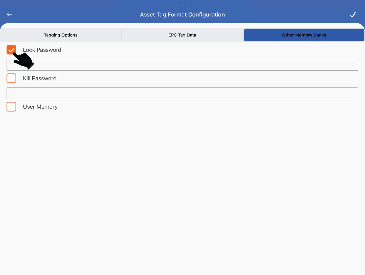 5. Then click on the “Other Memory Banks” tab and select the appropriate memory banks - “Lock Password”, “Kill Password”, “User Memory”; for enabling to encode them respectively.