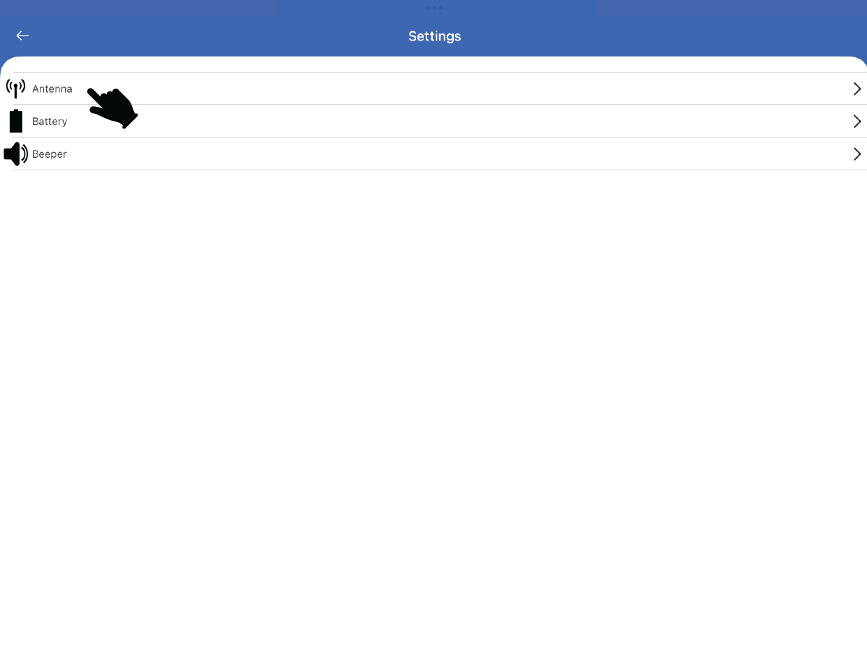5. A new “Settings” page will open. Then select “Antenna” option.