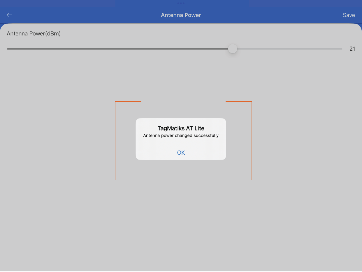 8. As a result, application will acknowledge as “Antenna power changed successfully”.