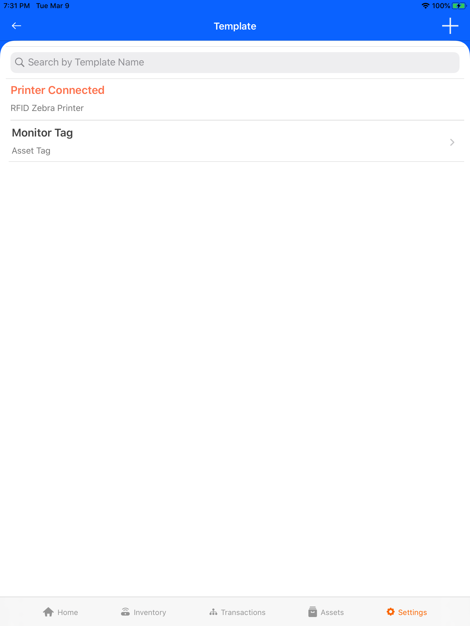 Once you save the printer successfully, the printer name will display above the template list and it's ready for printing the tags.