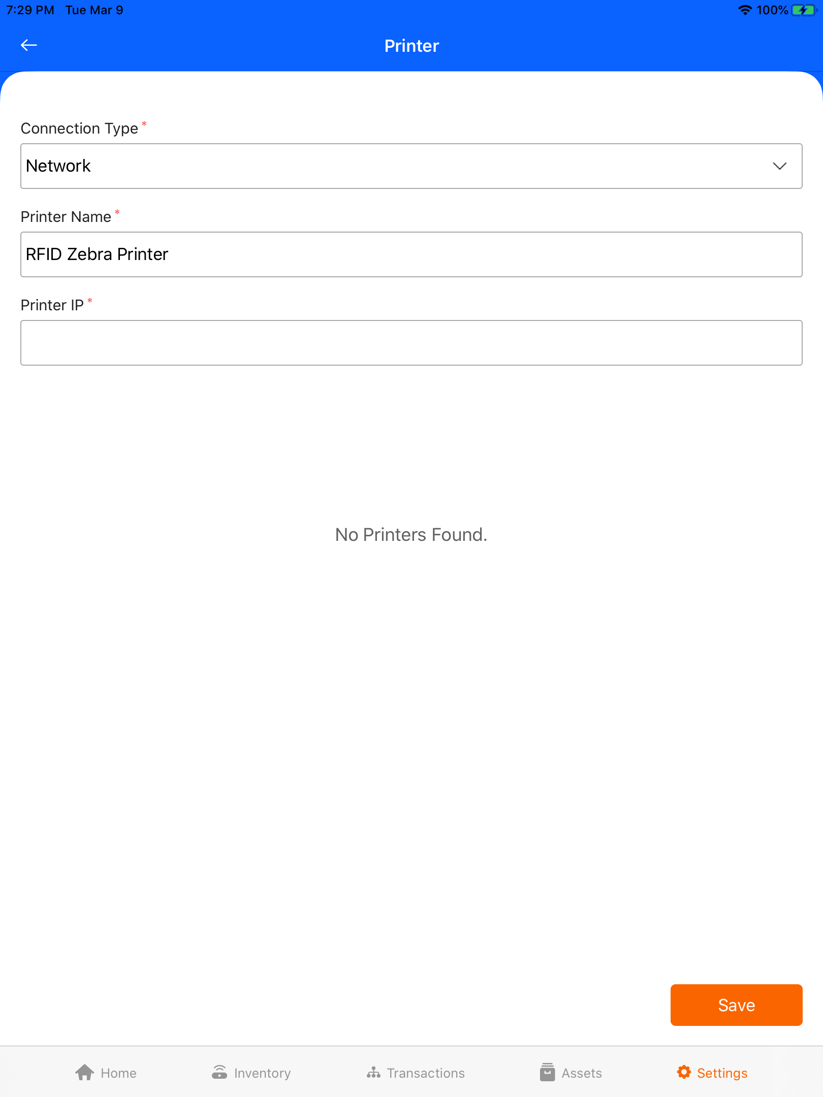 Enter the printer display name and their valid IP address then tap save to connect the printer to the application via Network