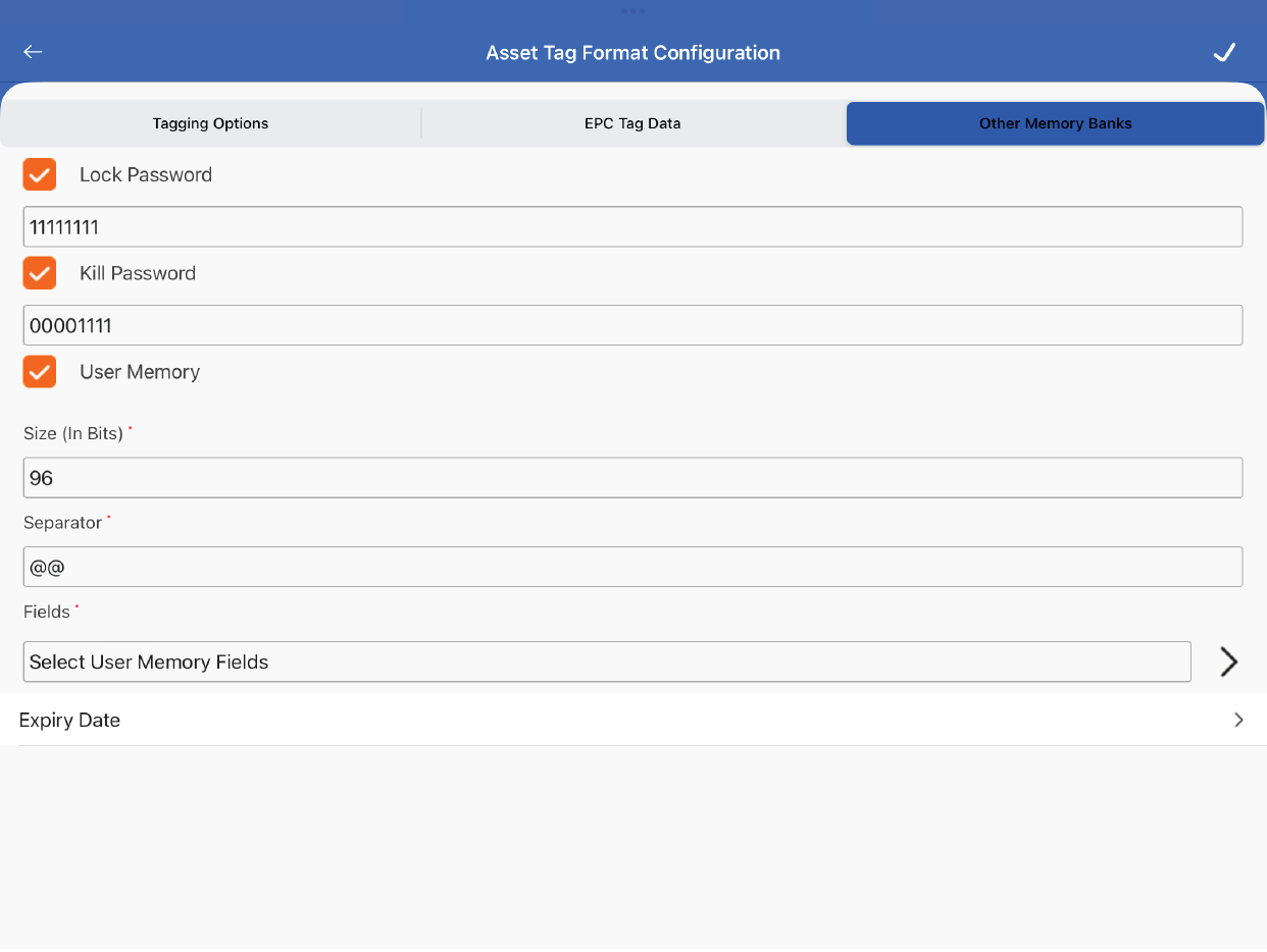 The Other Memory Banks tab lets you enable the banks for the lock password, kill password as well as the user memory bank. By default, they are disabled.