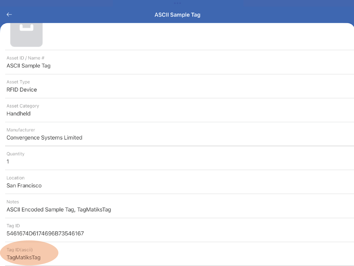 7. Then the application will be showing the Asset Tag ID’s in ASCII as well.