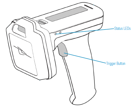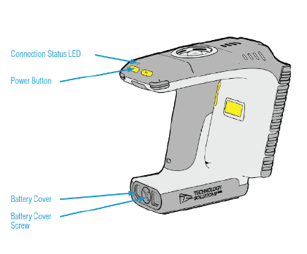 Both the 1166 and 1128 can easily be turned ON by pulling the trigger or pressing the Power button. The connection Status LED will blink blue as indication of the reader being awake and ready to connect.