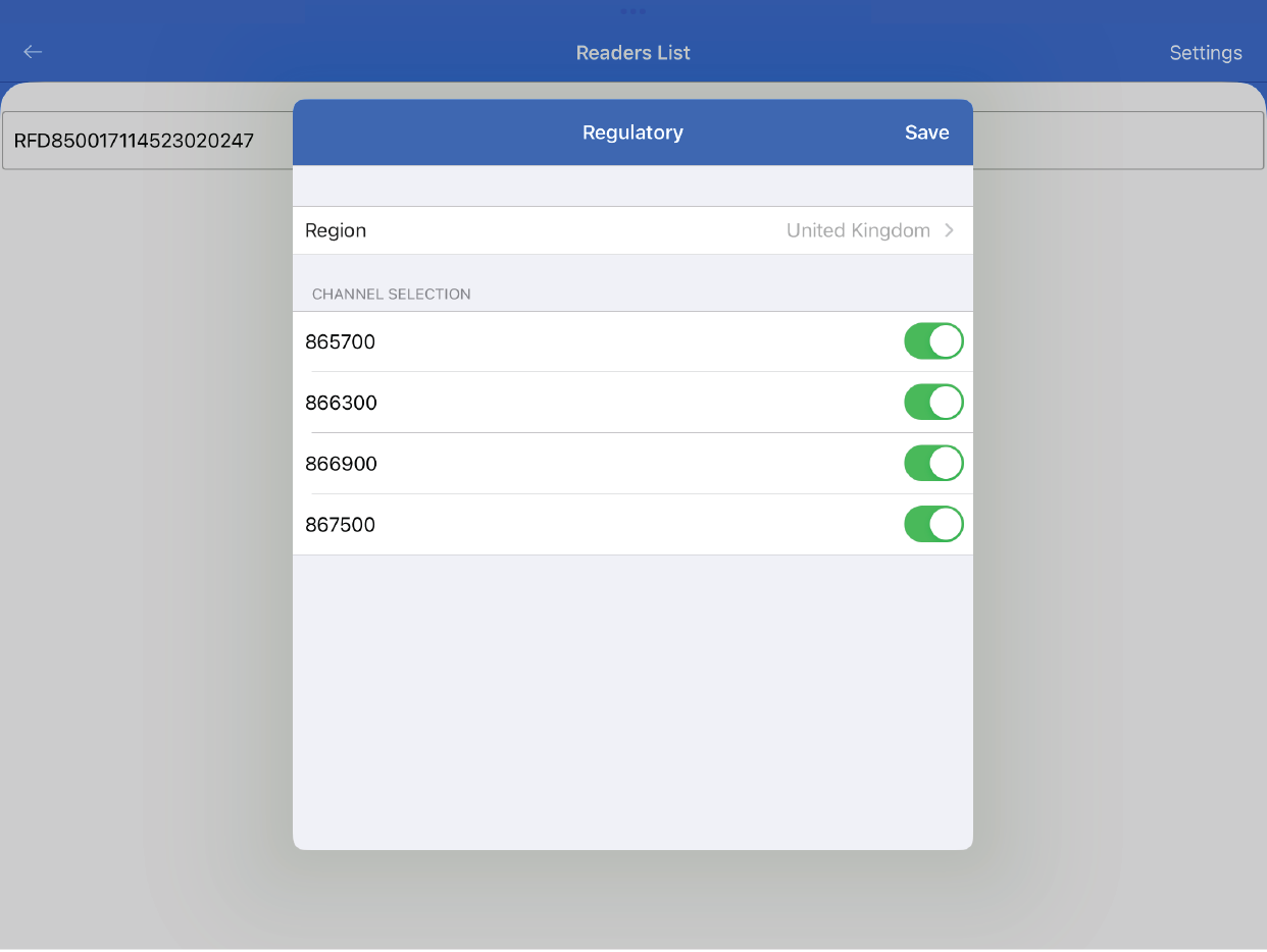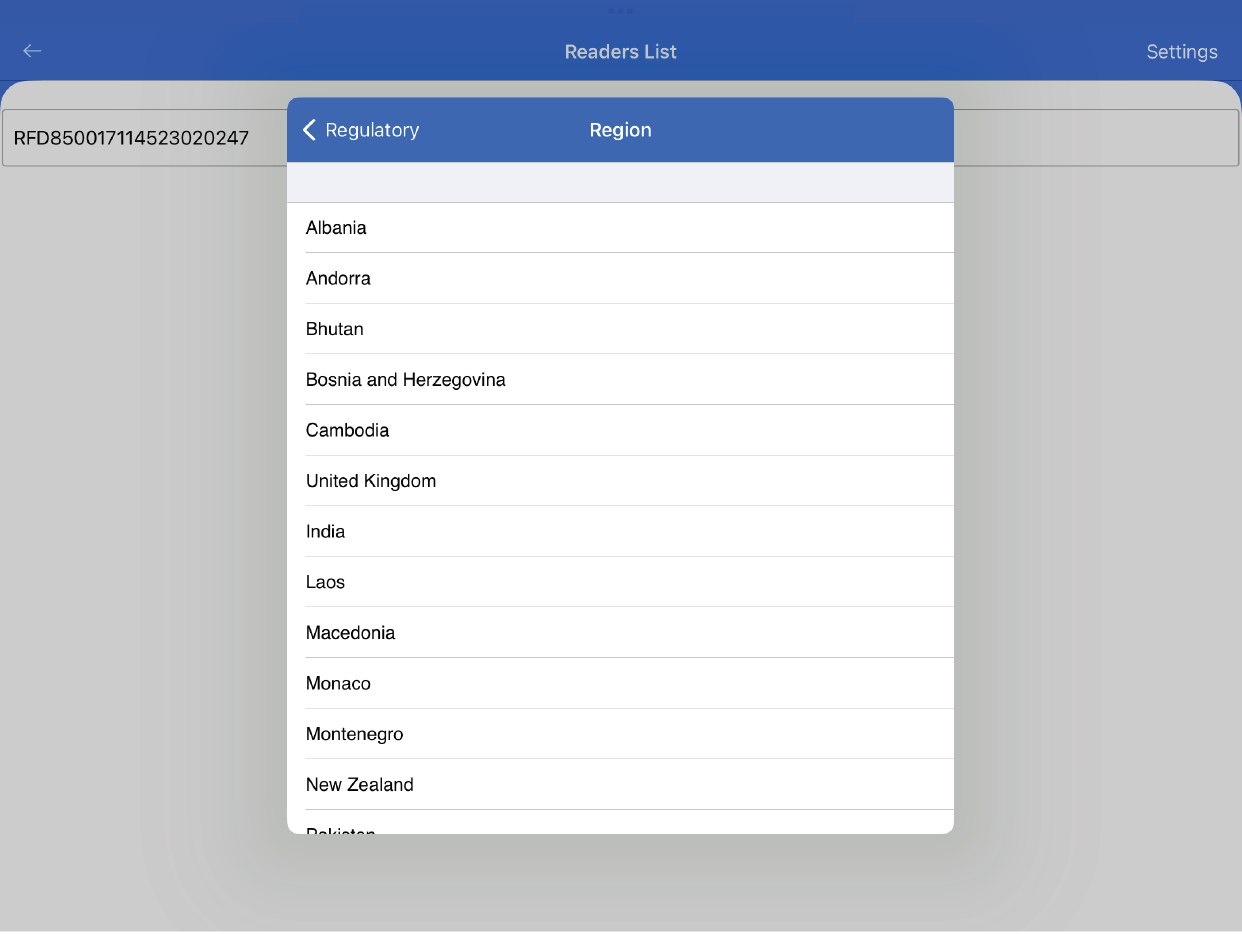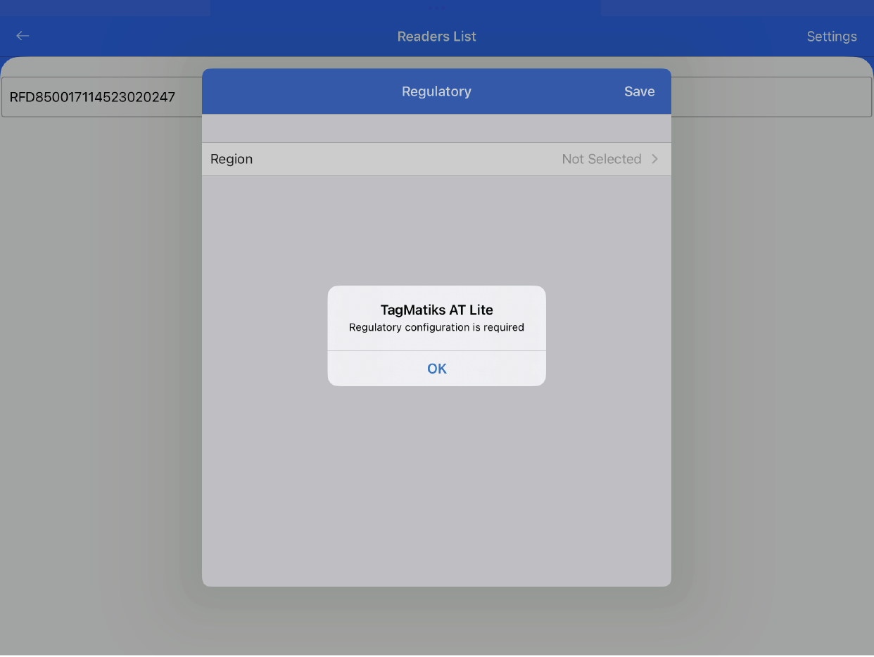 There is a one-time setup to configure the region for the RFID reader. If this has not already been set, you will be prompted to set that.