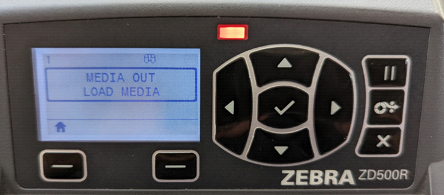 In thermal transfer mode the end of the ribbon roll has been detected.